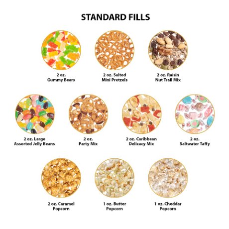 Treat Fill: Select one treat from the list below and specify on order (Please note you can choose up to 2 fills per order. Please specify quantity per fill). Contact customer service for ingredient and allergen information.